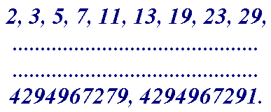 File primes.32b presents all 203280220 32-bit odd prime numbers from 3 to 4294967291.
